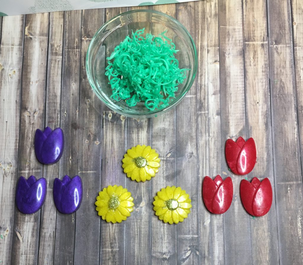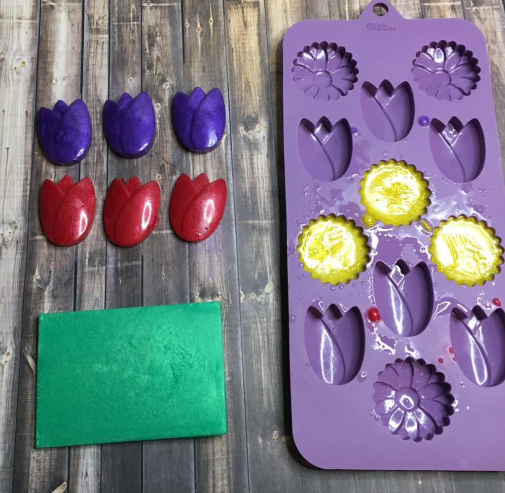 I absolutely love the way the spring flowers turned out in this melt and pour soap. To make this soap, I use two advanced techniques with embeds and shredding soap. It is a lot of steps, but if you are accustomed to layering soap and working with embeds, this will be pretty easy for you.